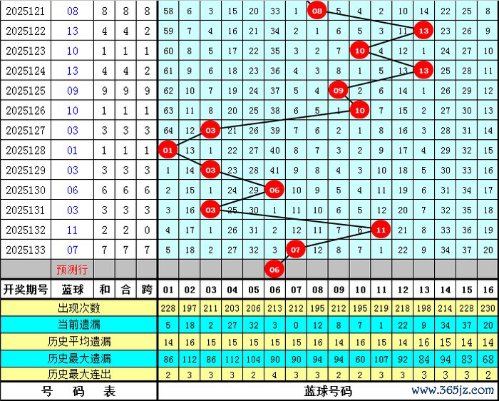 和值跨度分析:上期和值开出108,对比第2025132期和值飞腾了10个点位,本期看好和值走小,平和小 号区域和值,预测在85周围开出。